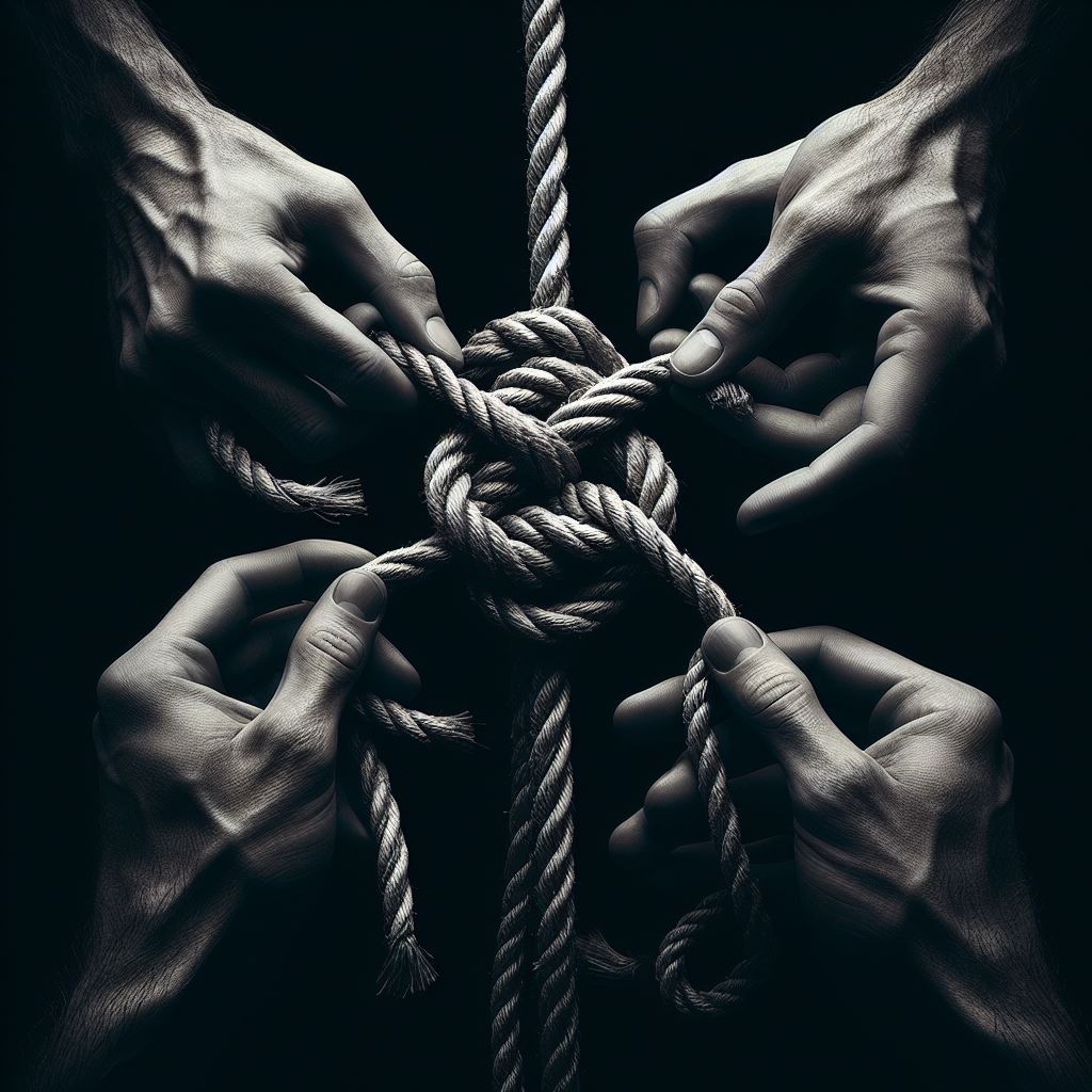 Saisissez vous d'un bout de corde, cordelette, bout marin ou autre pour réaliser cette séquence.